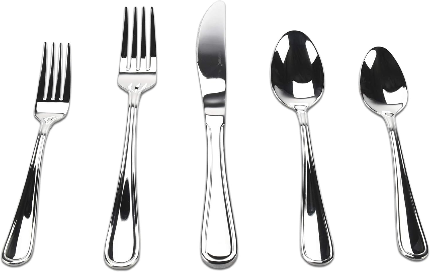 - ELEGANCE 20-PIECE FLATWARE SET: Includes four dinner forks, four salad forks, four knives, four spoons, and four teaspoons to provide complete table settings for four